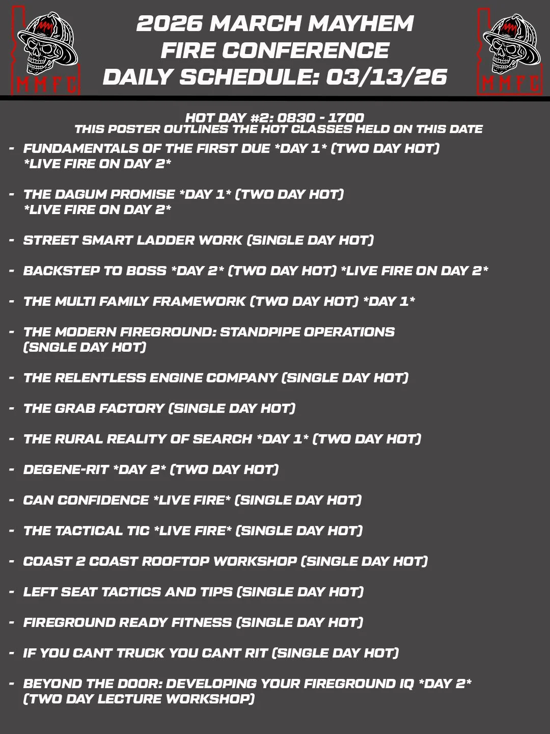 2026 MARCH MAYHEM FIRE CONFERENCE PRICING LIST/daily schedule